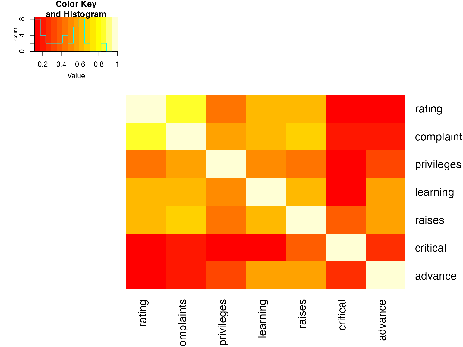 heatmap.2(x, dendrogram="none") ## no dendrogram plotted, but reordering done.